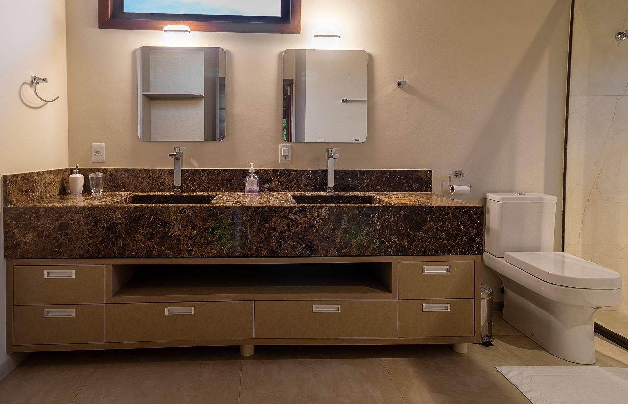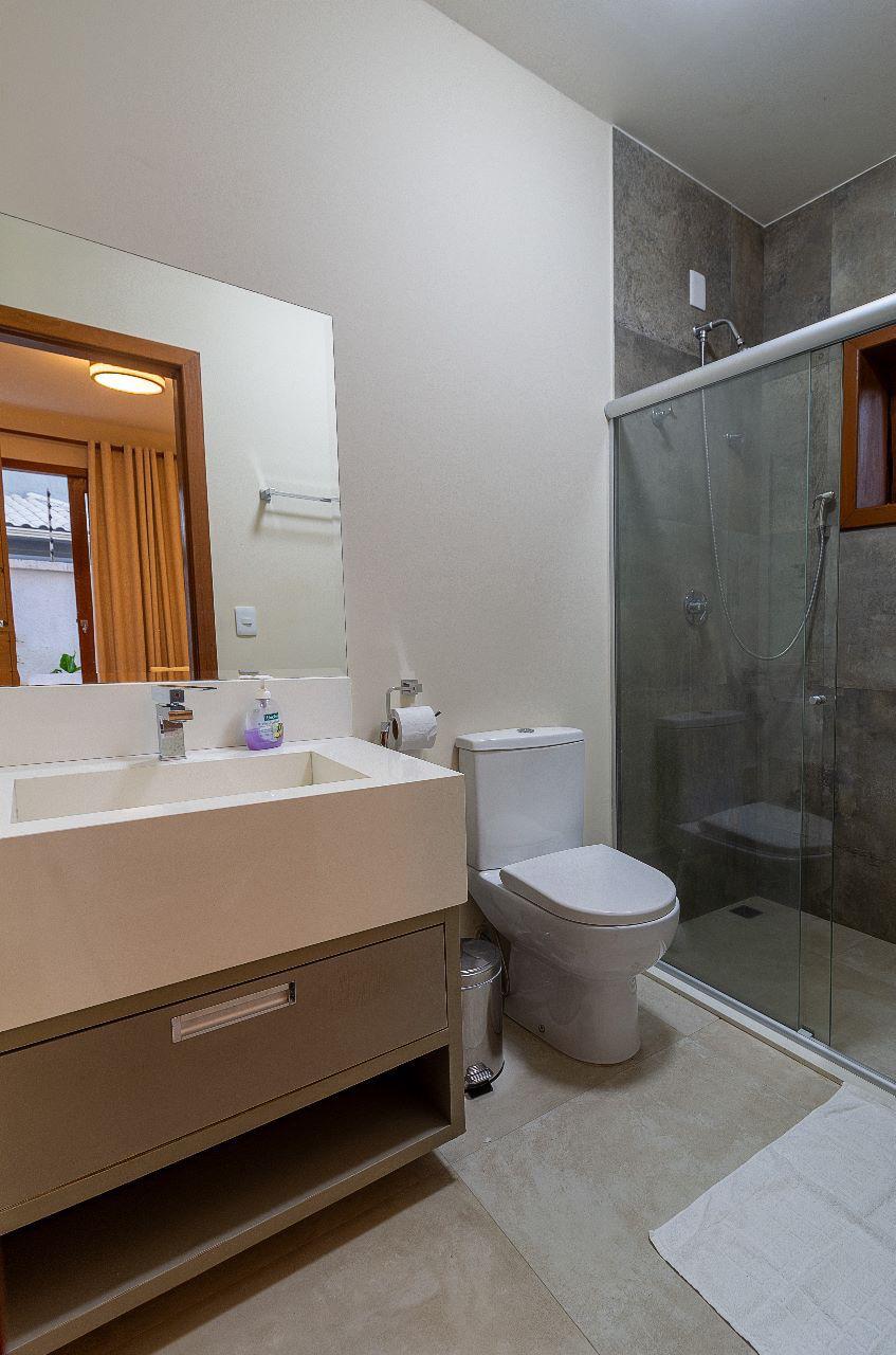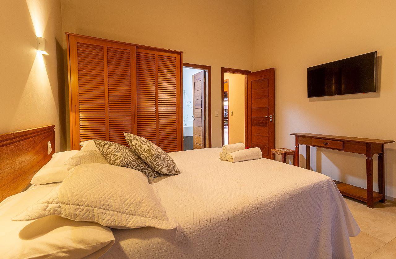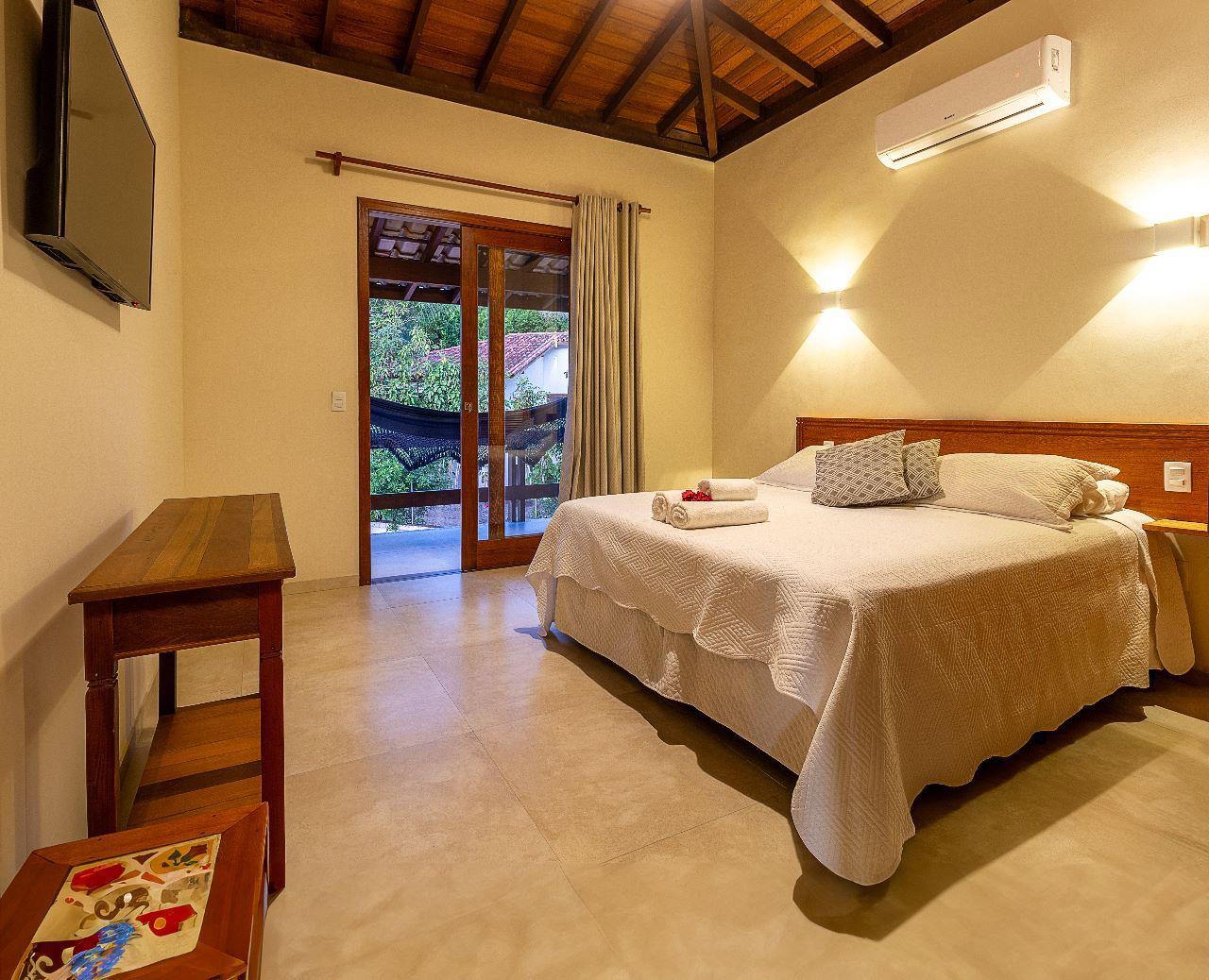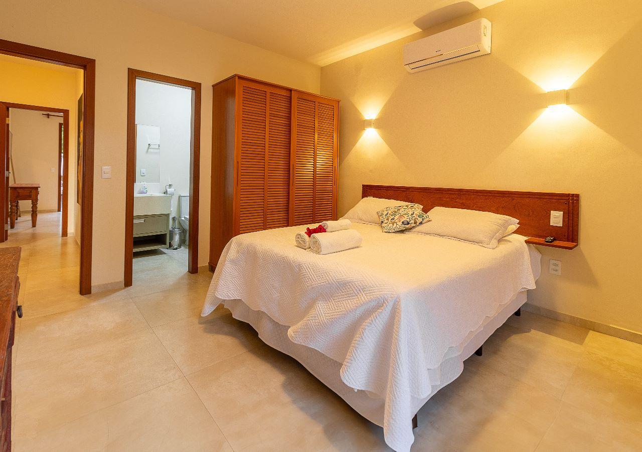 Estrutura Premium: Suíte master com cama king size e banheira, 5 suítes com camas queen, todas com ar-condicionado e TVs modernas, piscina, área gourmet ampla e garagem para 4 carros.
